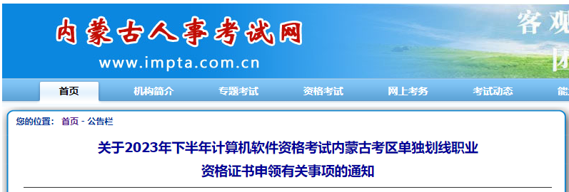 從內(nèi)蒙古人事考試網(wǎng)了解到,2023年下半年內(nèi)蒙古計(jì)算機(jī)軟件資格考試單獨(dú)劃線職業(yè)資格證書申領(lǐng)有關(guān)事項(xiàng)如下: