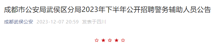 從成都武侯公安了解到,2023年四川成都市公安局武侯區(qū)分局招聘警務(wù)輔助人員75人,相關(guān)事宜詳情如下:
