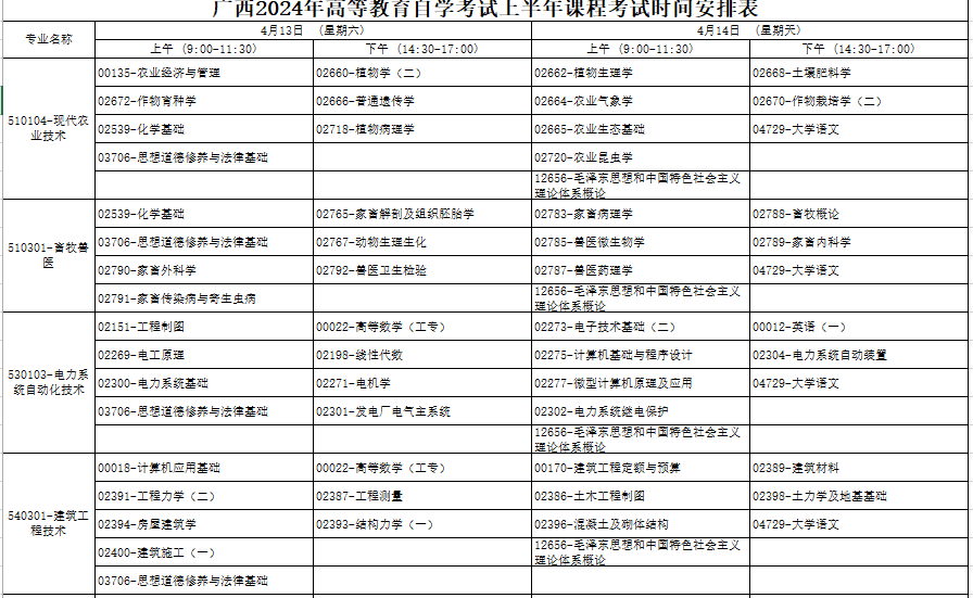 點(diǎn)擊查看》》廣西2024年高等教育自學(xué)考試上半年課程考試安排表