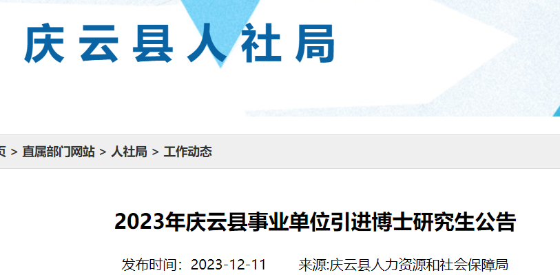 小編根據(jù)慶云縣人社局發(fā)布”2023年慶云縣事業(yè)單位引進(jìn)博士研究生公告“得知,2023年山東德州慶云縣事業(yè)單位引進(jìn)博士研究生6名,報(bào)名有效期截至2023年12月31日?!?BR>
