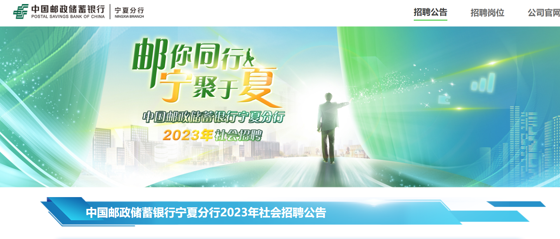 2023年中國郵政儲蓄銀行寧夏分行社會招聘公告已發(fā)布,報名截止時間:2023年11月27日24:00?,F(xiàn)將招聘公告原文發(fā)布如下: