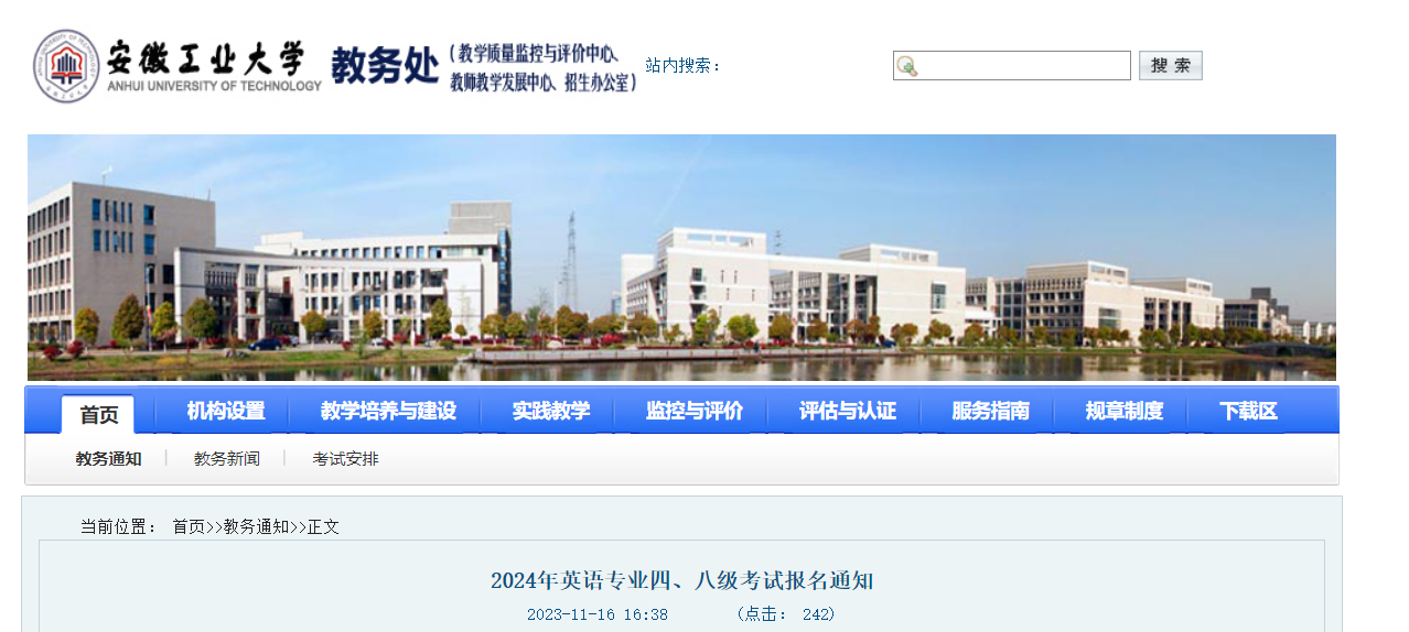 從安徽工業(yè)大學獲悉,安徽工業(yè)大學2024年英語專業(yè)四級、八級考試報名通知已公布,2023年11月17日-21日進行報名,具體詳情如下: