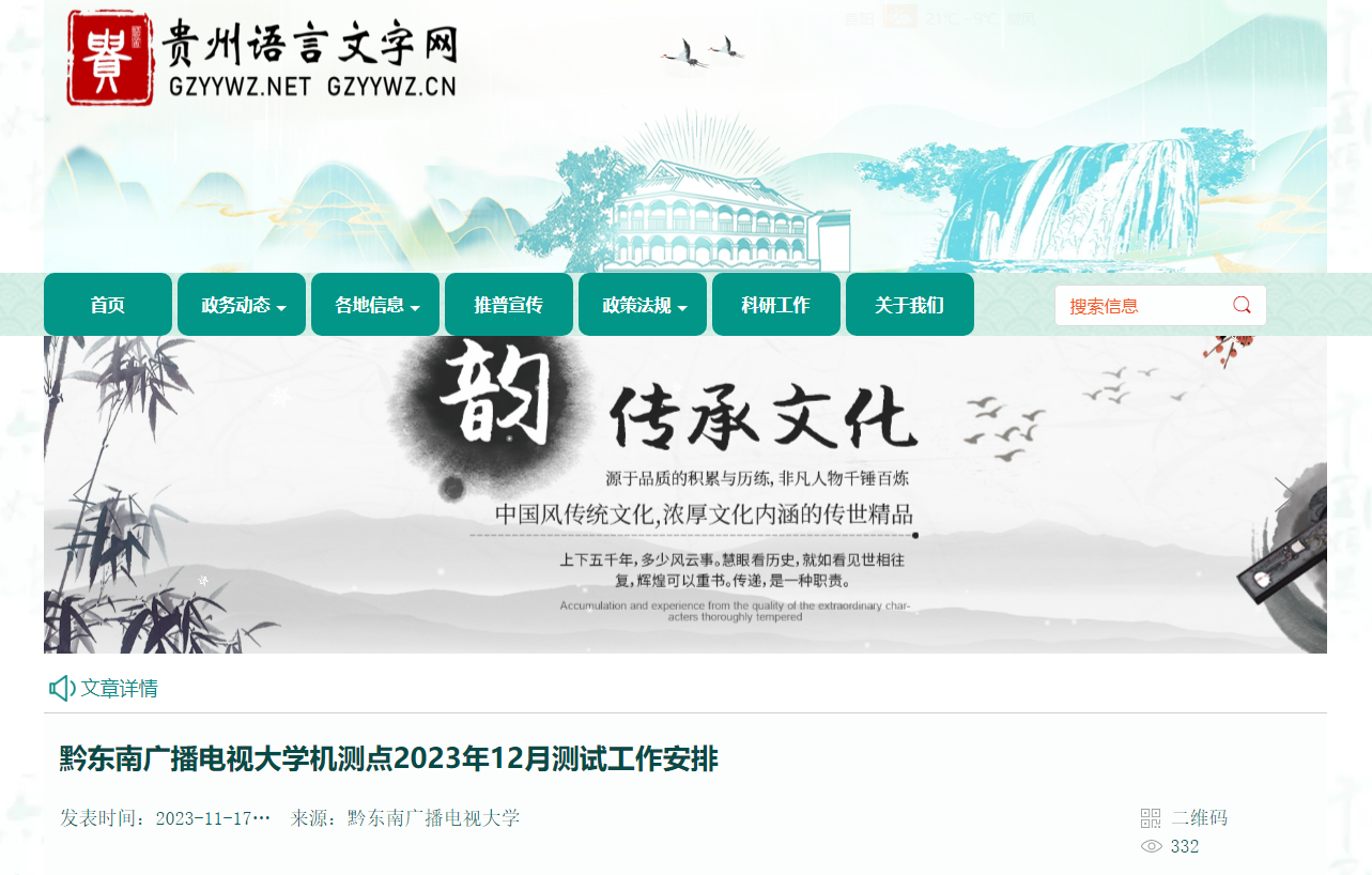 從貴州語言文字網(wǎng)獲悉,貴州黔東南廣播電視大學(xué)2023年12月普通話報(bào)名時(shí)間為12月4日起,考試時(shí)間為12月9日、23日,具體詳情如下: