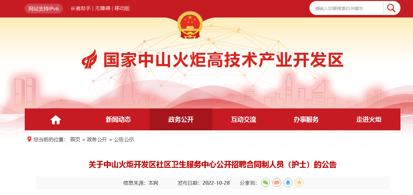 原文標題:關于中山火炬開發(fā)區(qū)社區(qū)衛(wèi)生服務中心公開招聘合同制人員(護士)的公告