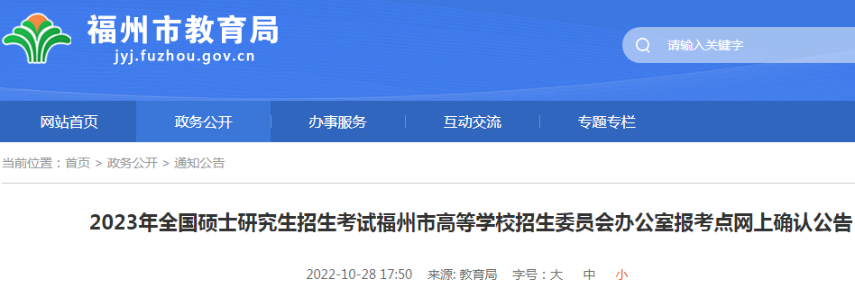 考研頻道從福州市教育局了解到,2023年全國碩士研究生招生考試福建福州市高等學(xué)校招生委員會辦公室報考點(diǎn)網(wǎng)上確認(rèn)公告已發(fā)布,詳情如下: