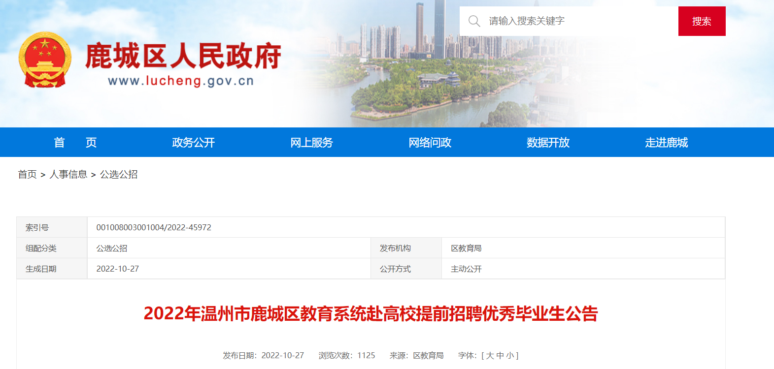 2022年浙江溫州市鹿城區(qū)教育系統(tǒng)赴高校提前招聘優(yōu)秀畢業(yè)生報(bào)名入口