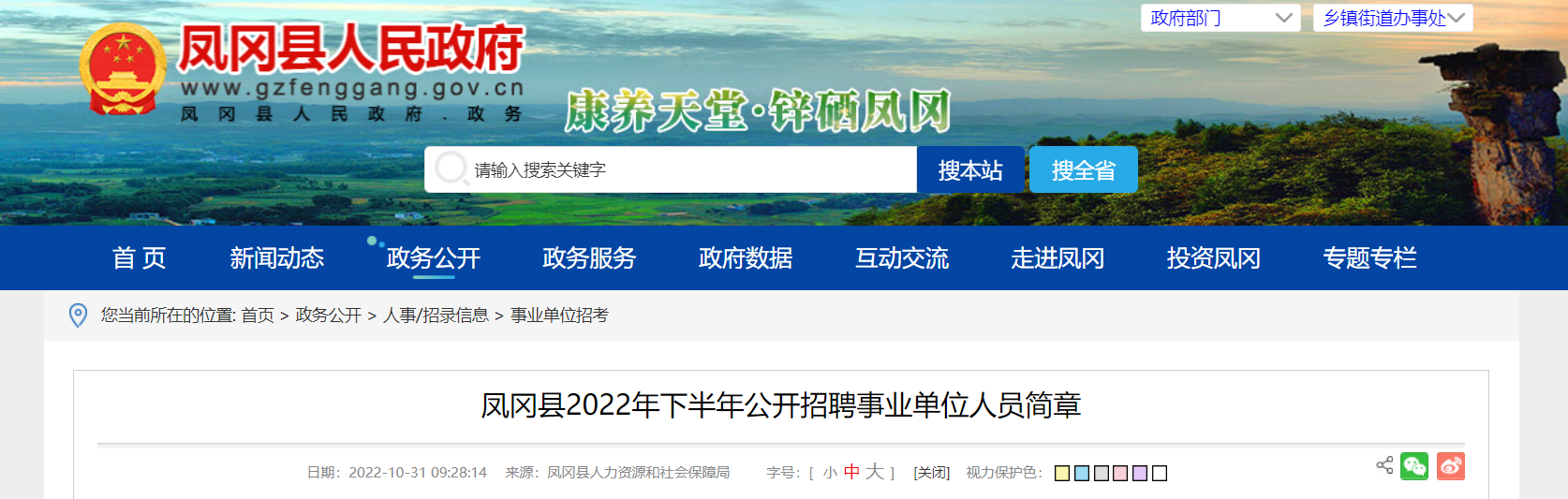 2022下半年貴州省遵義市鳳岡縣招聘事業(yè)單位人員122人, 報名時間:2022年11月9日9:00至11月11日17:00。為了方便考生報考,現(xiàn)將相關信息發(fā)布如下:
