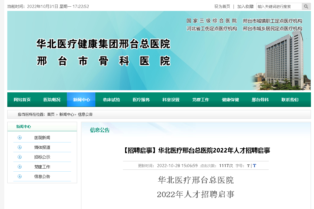 原文標(biāo)題:華北醫(yī)療邢臺(tái)總醫(yī)院2022年人才招聘啟事