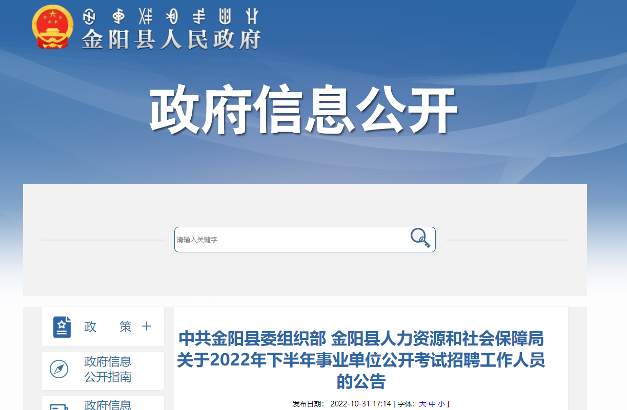 原文標(biāo)題:中共金陽縣委組織部金陽縣人力資源和社會保障局關(guān)于2022年下半年事業(yè)單位公開考試招聘工作人員的公告