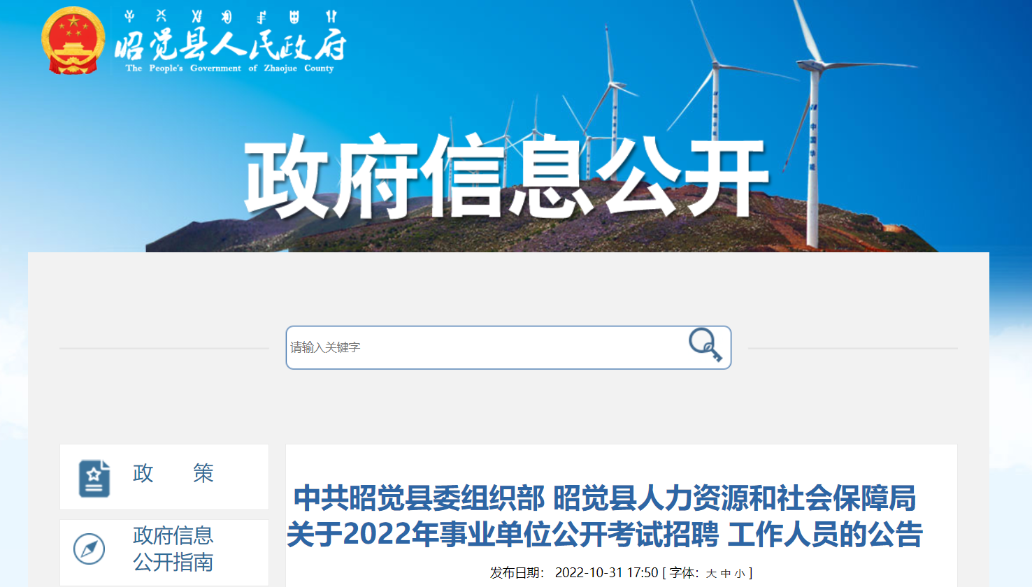 原文標(biāo)題:中共昭覺縣委組織部 昭覺縣人力資源和社會保障局關(guān)于2022年事業(yè)單位公開考試招聘 工作人員的公告