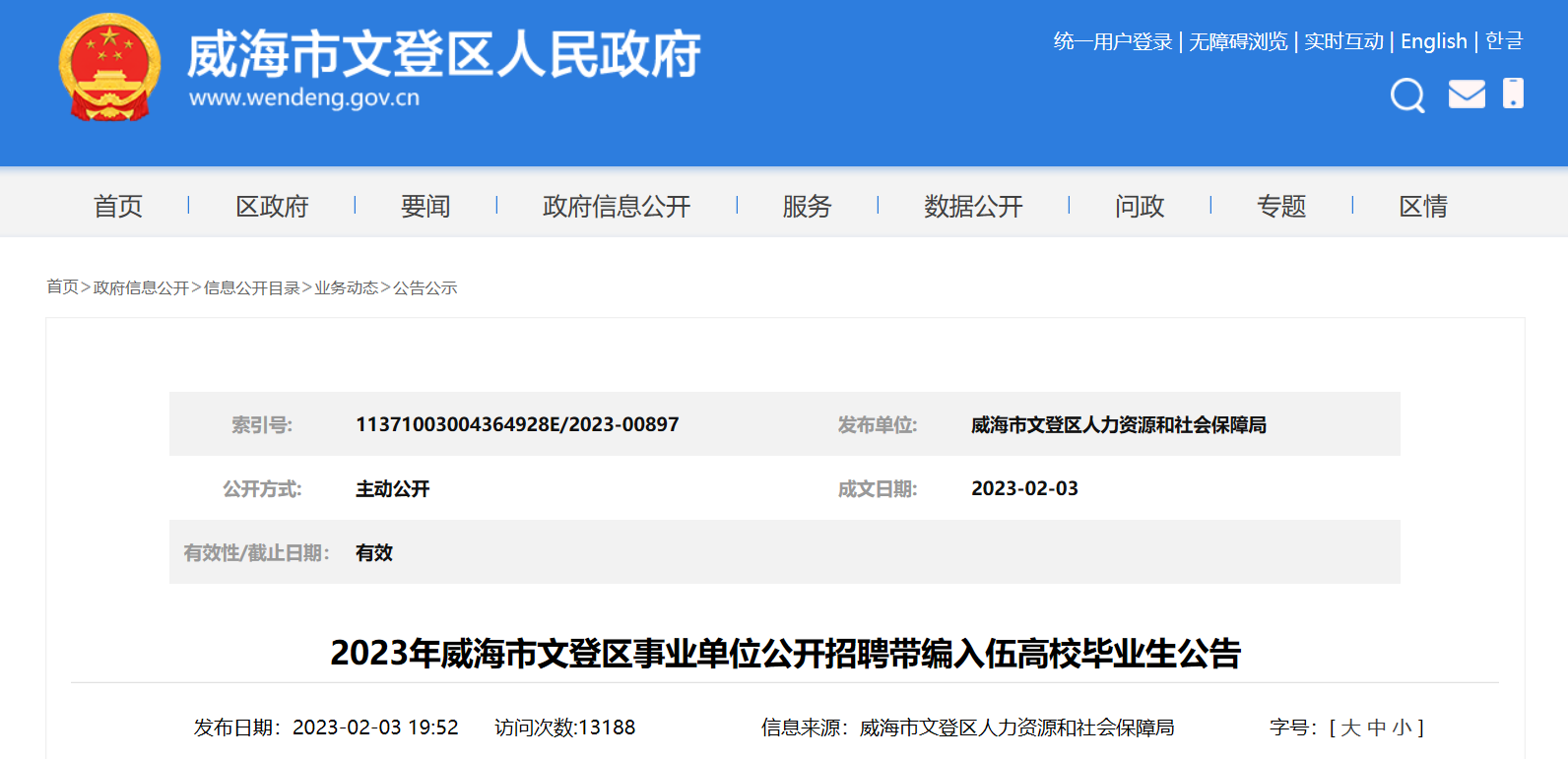 原文標(biāo)題:2023年威海市文登區(qū)事業(yè)單位公開(kāi)招聘帶編入伍高校畢業(yè)生公告