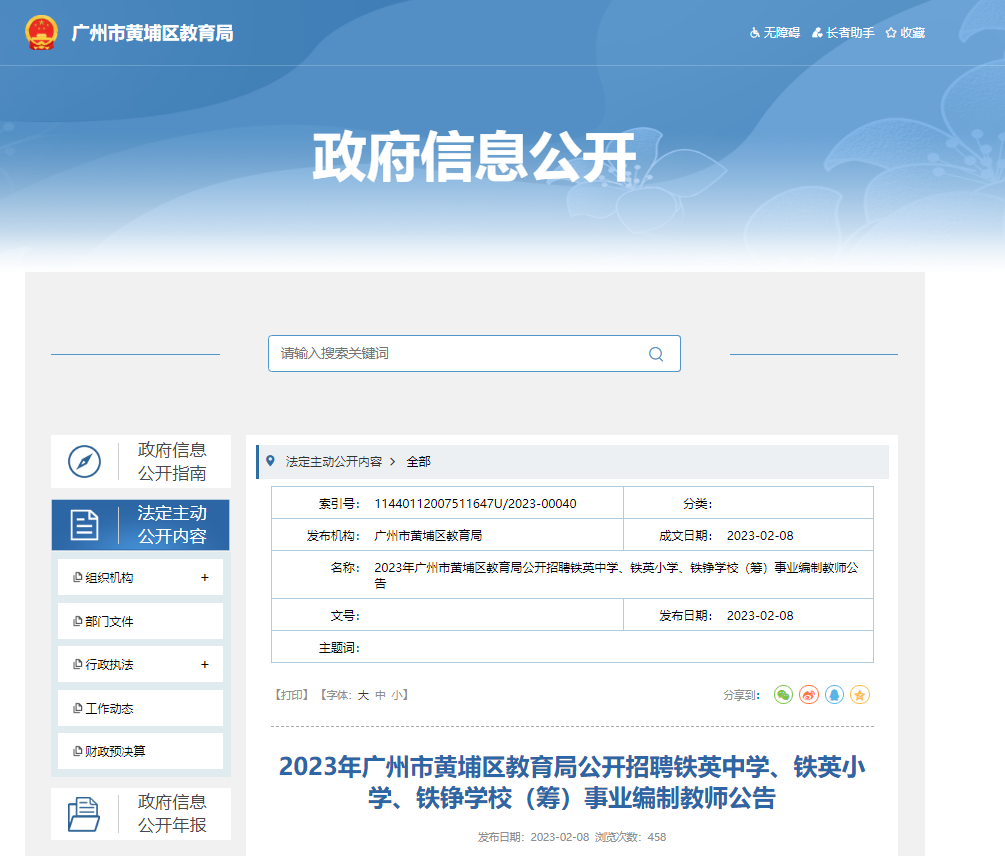 【點擊進入:2023年廣東廣州黃埔區(qū)鐵英中學(xué)、鐵英小學(xué)、鐵錚學(xué)校(籌)事業(yè)編制教師招聘報名入口】