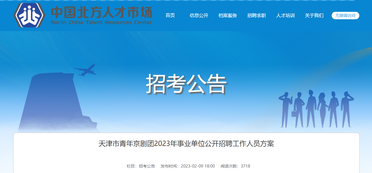 本次招聘公告于2023年2月9日在天津市文化和旅游局門戶網(wǎng)站和北方人才網(wǎng)發(fā)布。公告發(fā)布時間為7個工作日。