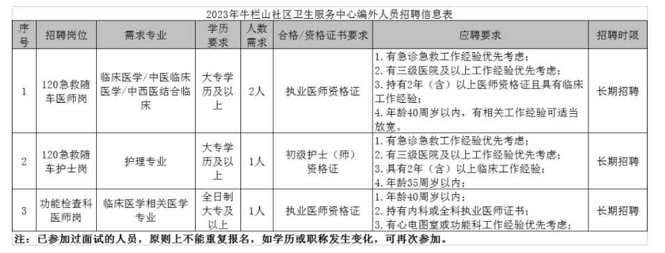 根據(jù)順義區(qū)牛欄山社區(qū)衛(wèi)生服務(wù)中心2023年編外人員招聘需求,現(xiàn)面向社會公開招聘編外合同制工作人員,相關(guān)事項公告如下: