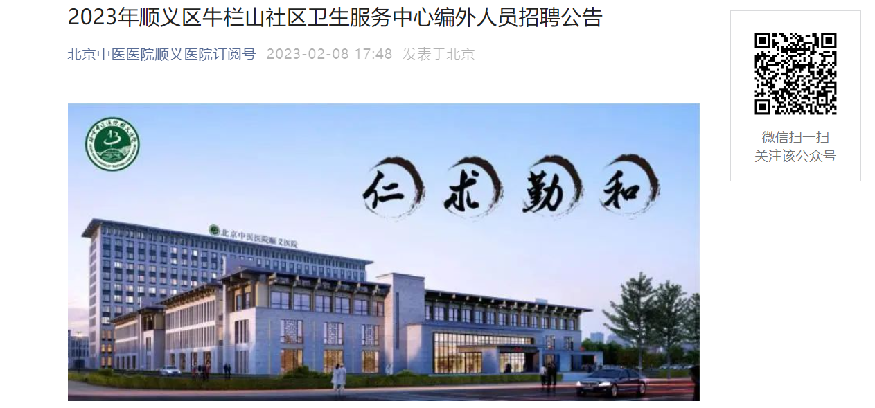 原文標(biāo)題:2023年順義區(qū)牛欄山社區(qū)衛(wèi)生服務(wù)中心編外人員招聘公告