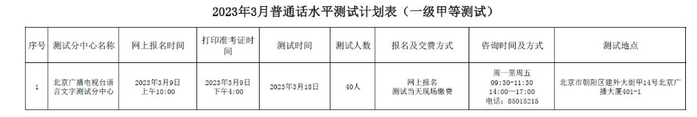 從北京市語言測試中心獲悉,2023年3月北京一級甲等普通話考試時間為3月18日,報名時間為3月9日起,具體詳情如下: