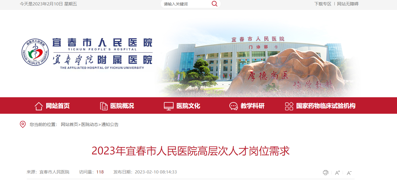 原文標(biāo)題:2023年宜春市人民醫(yī)院高層次人才崗位需求