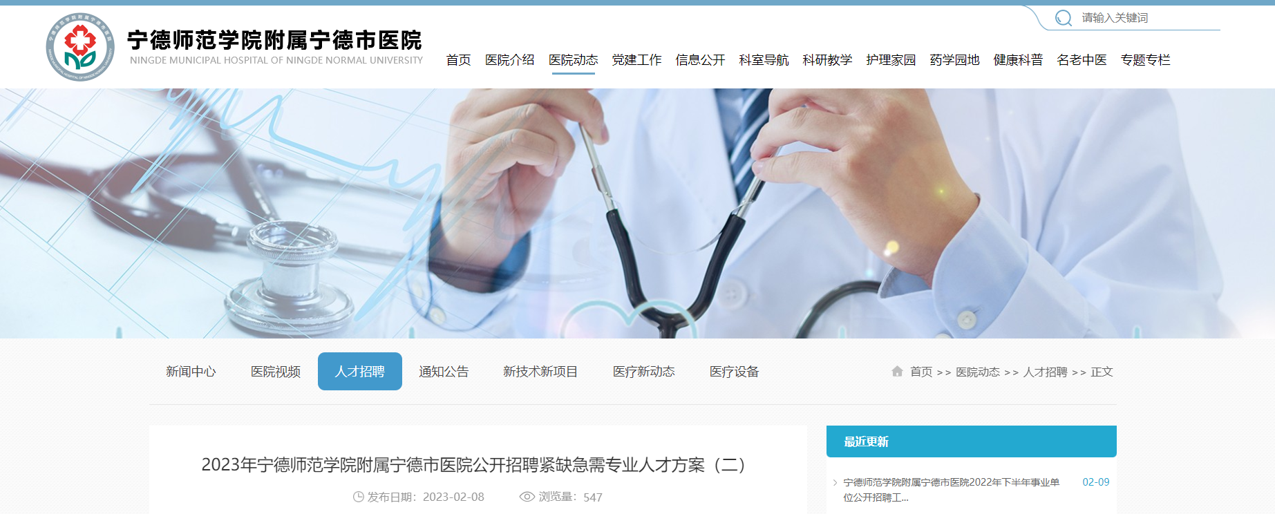 招聘信息在寧德師范學(xué)院附屬寧德市醫(yī)院網(wǎng)站(http://www.ndsyy.com/)上公開發(fā)布。