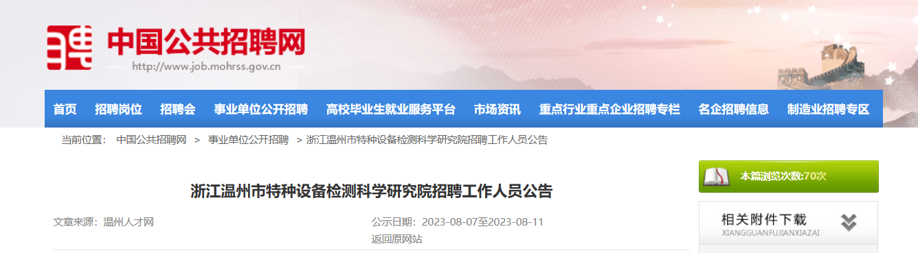 2023年浙江省溫州市特種設備檢測科學研究院招聘工作人員公告。報名時間:2023年08月07日至08月11日。現將公告原文發(fā)布如下: