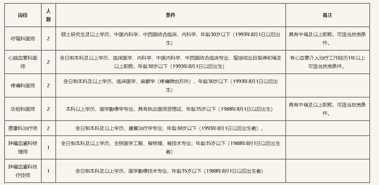 (一)基本條件:熱愛祖國,遵紀(jì)守法,品行端正;熱愛醫(yī)院,工作勤奮,團(tuán)結(jié)協(xié)作,具有高度的責(zé)任感和吃苦耐勞精神;具有較好的語言表達(dá)能力及溝通協(xié)調(diào)能力,思維敏捷;身心健康。