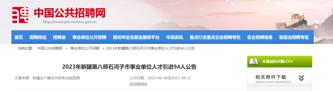 2023年新疆第八師石河子市事業(yè)單位人才引進(jìn)94人。網(wǎng)上報(bào)名時(shí)間:自公告之日起,截至2023年8月21日?,F(xiàn)將公告原文發(fā)布如下: