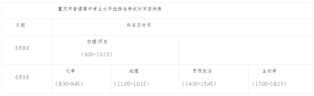 (2)普通高中學業(yè)水平選擇性考試。普通高中學業(yè)水平選擇性考試科目考試時間安排在6月8日上午和6月9日全天,每科考試時長均為75分鐘。