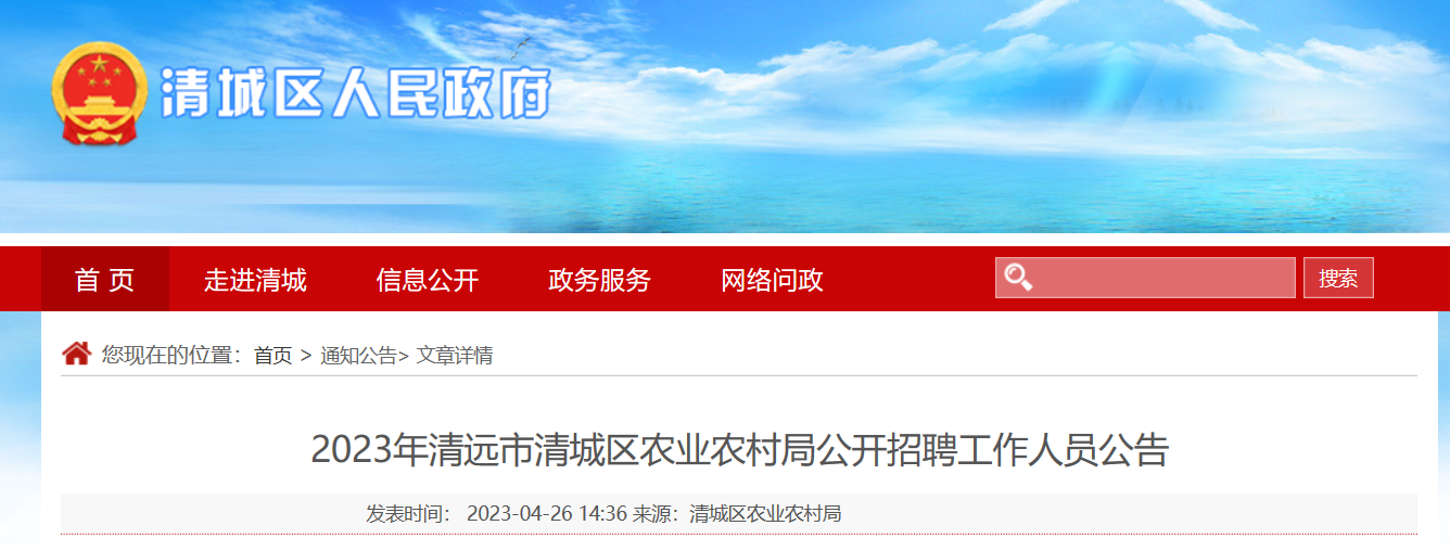 根據(jù)工作需要,清遠(yuǎn)市清城區(qū)農(nóng)業(yè)農(nóng)村局面向社會公開招聘工作人員2名?,F(xiàn)將有關(guān)事項公告如下: