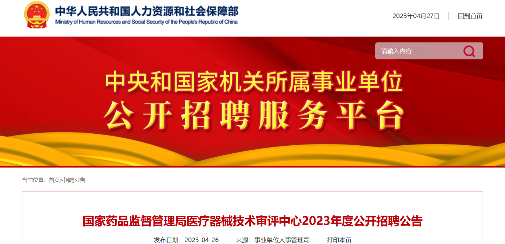 原文標題:國家藥品監(jiān)督管理局醫(yī)療器械技術審評中心2023年度公開招聘公告