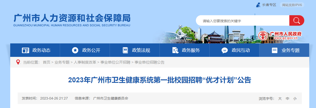 原文標題:2023年廣州市衛(wèi)生健康系統(tǒng)第一批校園招聘“優(yōu)才計劃”公告