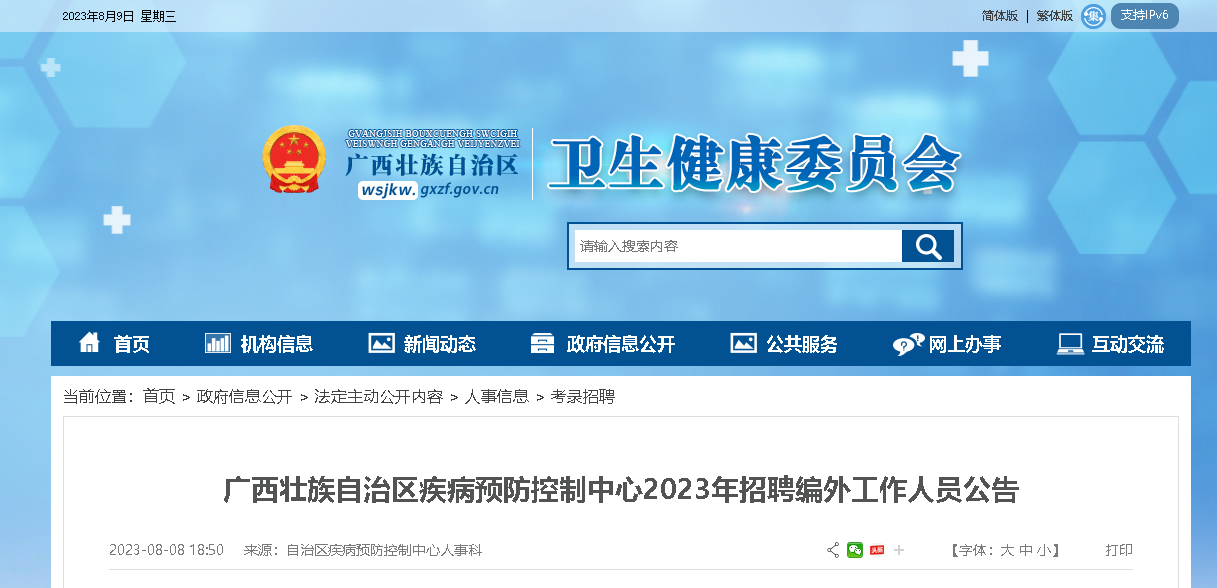 2023廣西壯族自治區(qū)疾病預防控制中心招聘編外人員2人,報名時間:自本公告發(fā)布之日起接受報名,報名截止至2023年8月22日止,現(xiàn)將招聘公告原文發(fā)布如下: