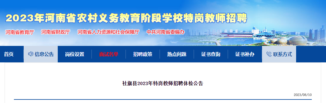 2023年河南南陽社旗縣特崗教師招聘體檢公告已發(fā)布,體檢時間:2023年8月18日?,F(xiàn)將公告原文發(fā)布如下: