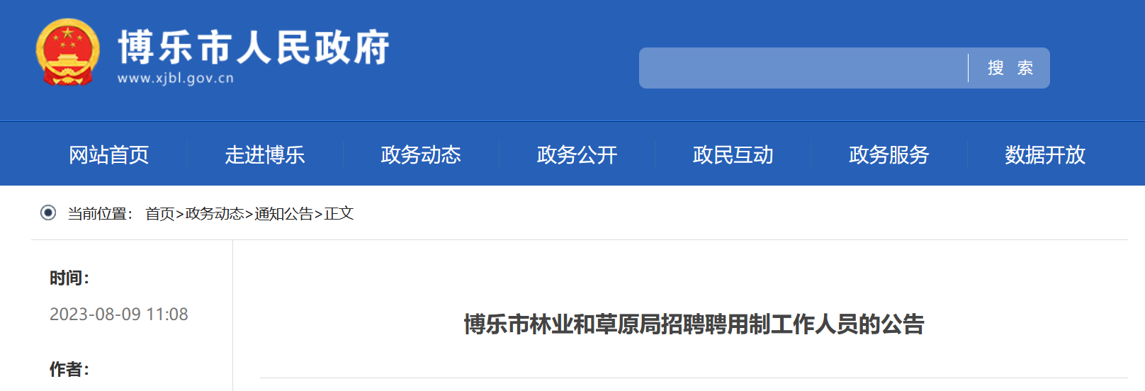 2023年新疆博爾塔拉州博樂市林業(yè)和草原局招聘聘用制工作人員1人。報名時間:2023年8月15日截止?,F(xiàn)將公告原文發(fā)布如下: