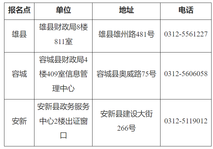 五、領(lǐng)取地點:考生到各自報名點領(lǐng)取。雄安考區(qū)報名點領(lǐng)取地址如下: