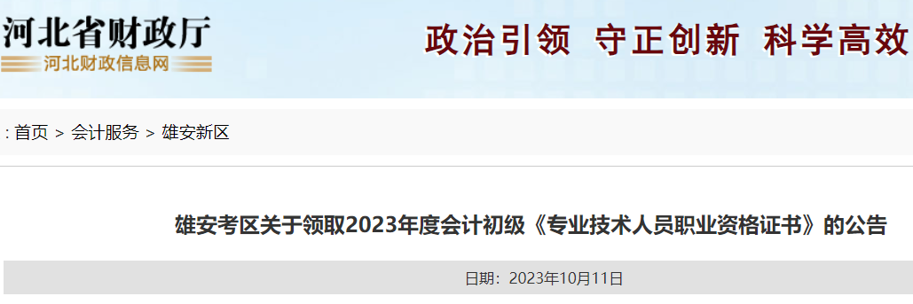 小編根據(jù)河北省財政廳發(fā)布“雄安考區(qū)關(guān)于領(lǐng)取2023年度會計初級《專業(yè)技術(shù)人員職業(yè)資格證書》的公告”得知,集中發(fā)放時間為2023年10月16日至10月31日,考生到報名時選擇的報名點所屬縣級財政部門領(lǐng)取,領(lǐng)證時攜帶資料及要求如下: