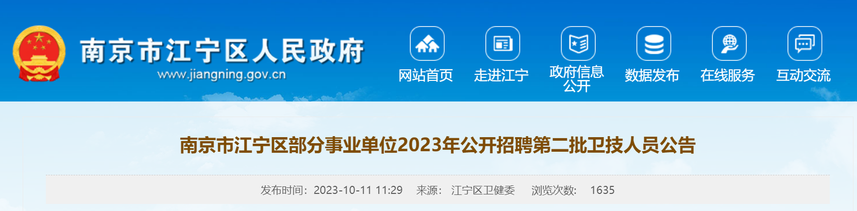 2023江蘇南京江寧區(qū)部分事業(yè)單位招聘第二批衛(wèi)技人員47人,報名時間:2023年10月18日09:00至10月20日16:00。現(xiàn)將招聘公告原文發(fā)布如下: