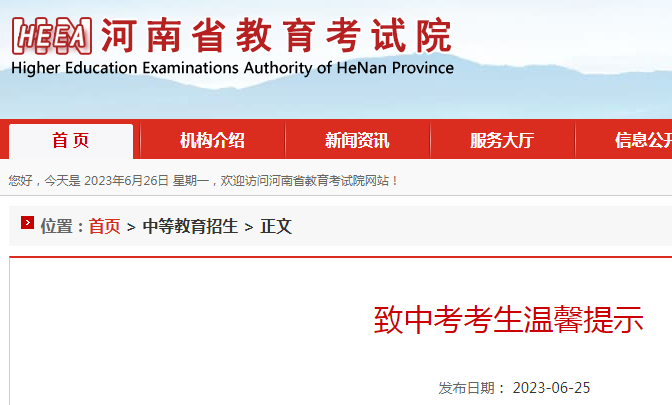 中考頻道從河南省教育考試院了解到,2023年河南中考考生溫馨提示已發(fā)布。詳情如下: