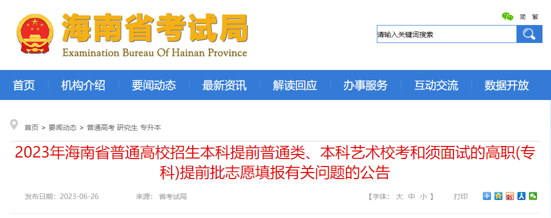從海南省考試局了解到,2023年海南普通高校招生本科提前普通類(lèi)、本科藝術(shù)校考和須面試的高職(專(zhuān)科)提前批志愿填報(bào)于6月27日進(jìn)行,相關(guān)事宜如下: