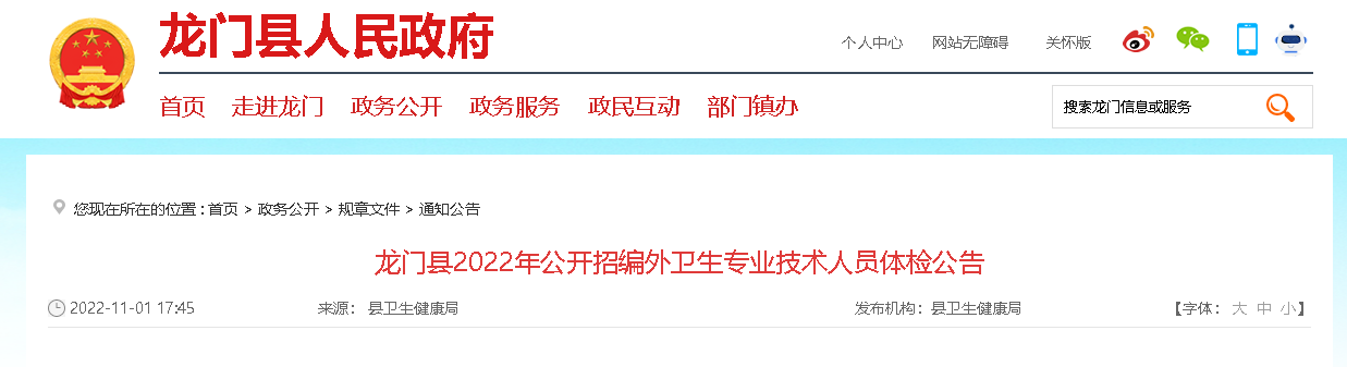 原文標(biāo)題:龍門(mén)縣2022年公開(kāi)招編外衛(wèi)生專業(yè)技術(shù)人員體檢公告
