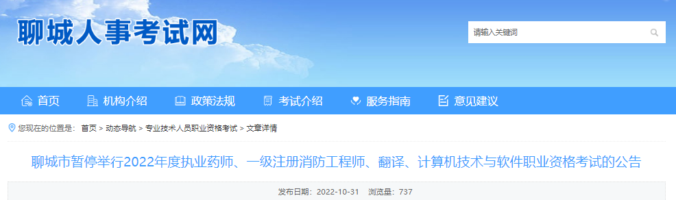 原文標(biāo)題:聊城市暫停舉行2022年度執(zhí)業(yè)藥師、一級注冊消防工程師、翻譯、計算機(jī)技術(shù)與軟件職業(yè)資格考試的公告