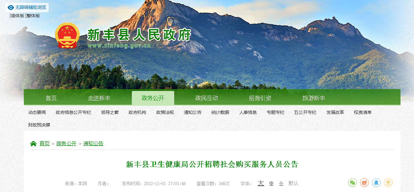 2022廣東韶關(guān)新豐縣衛(wèi)生健康局招聘社會(huì)購買服務(wù)人員2人,報(bào)名時(shí)間:2022年11月14日至11月16日(上午9:00-11:30,下午15:00-17:00),現(xiàn)將招聘公告原文發(fā)布如下: