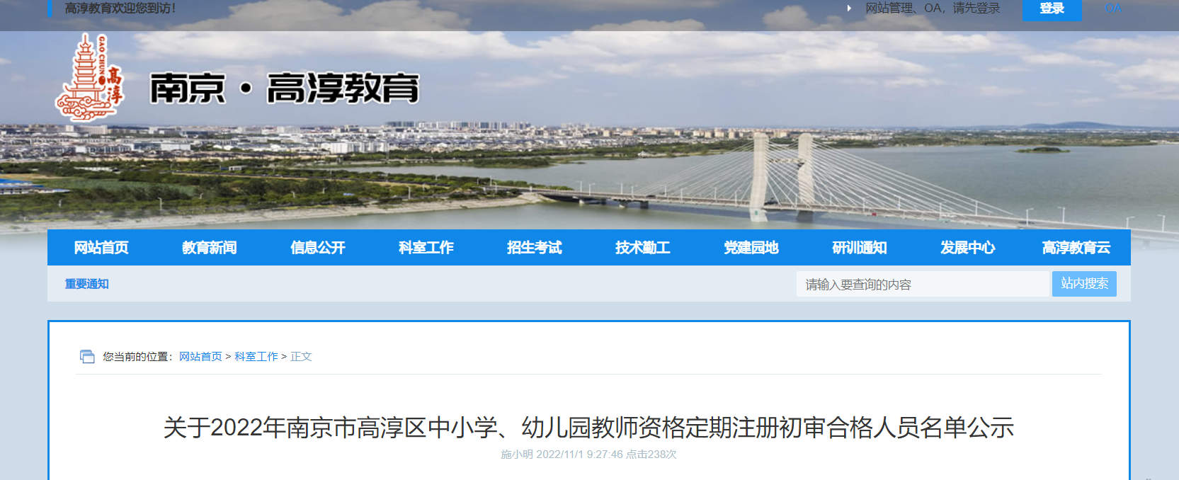原文標(biāo)題:關(guān)于2022年南京市高淳區(qū)中小學(xué)、幼兒園教師資格定期注冊初審合格人員名單公示