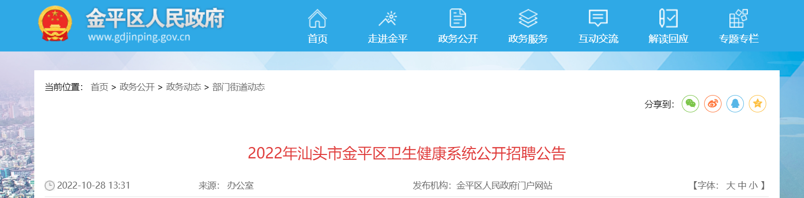 原文標題:2022年汕頭市金平區(qū)衛(wèi)生健康系統(tǒng)公開招聘公告