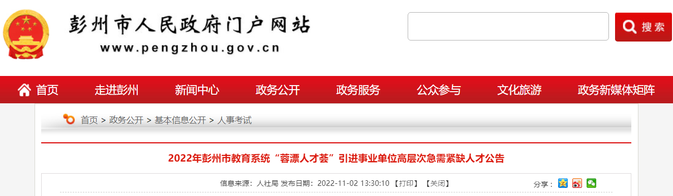 在彭州市人民政府門戶網(wǎng)站、西南大學(xué)等網(wǎng)站發(fā)布招聘公告。