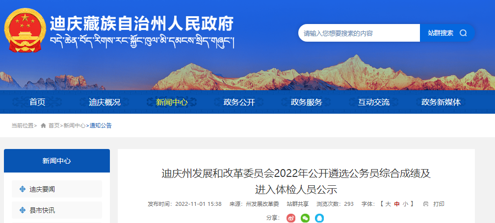 原文標題:迪慶州發(fā)展和改革委員會2022年公開遴選公務員綜合成績及進入體檢人員公示
