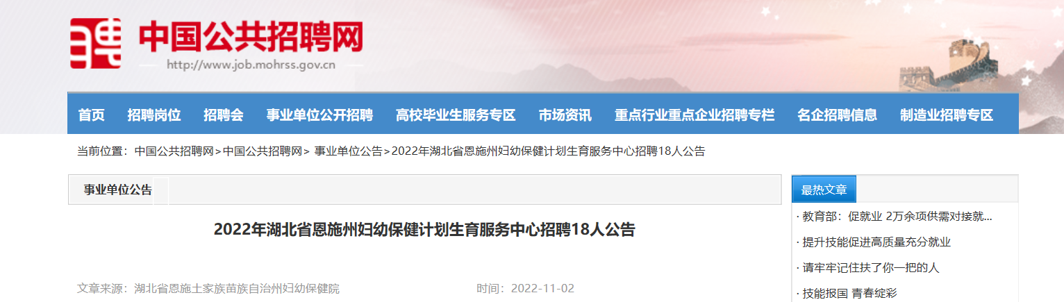 招聘公告在州婦幼保健計(jì)劃生育服務(wù)中心(http://www.eszfy.com/)面向社會(huì)公布。