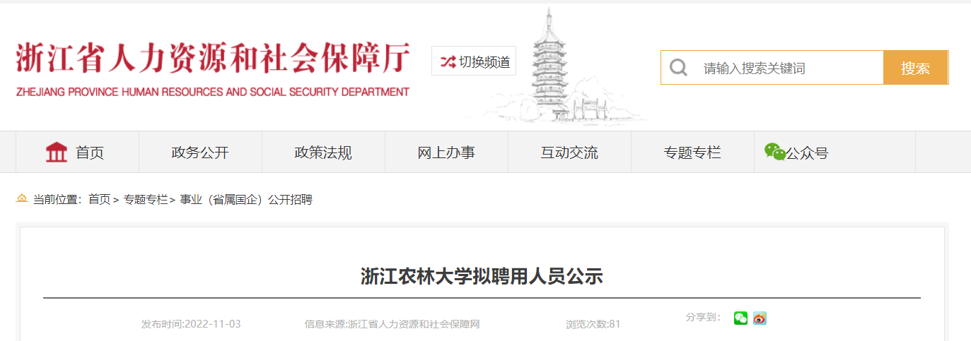 2022浙江農(nóng)林大學(xué)擬聘用人員公示已發(fā)布,公示時間:從2022年11月3日到2022年11月11日,現(xiàn)將原文發(fā)布如下: