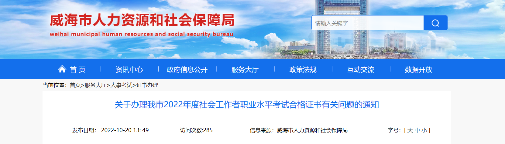 從威海市人力資源和社會(huì)保障局 獲悉,關(guān)于辦理2022年山東威海社會(huì)工作者職業(yè)水平考試合格證書有關(guān)問題的通知已公布,請(qǐng)相關(guān)人員仔細(xì)閱讀,具體詳情如下: