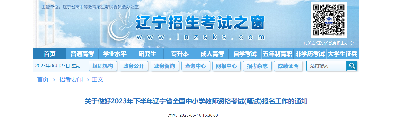 點(diǎn)擊進(jìn)入>>>2023下半年遼寧中小學(xué)教師資格考試筆試報(bào)名入口
