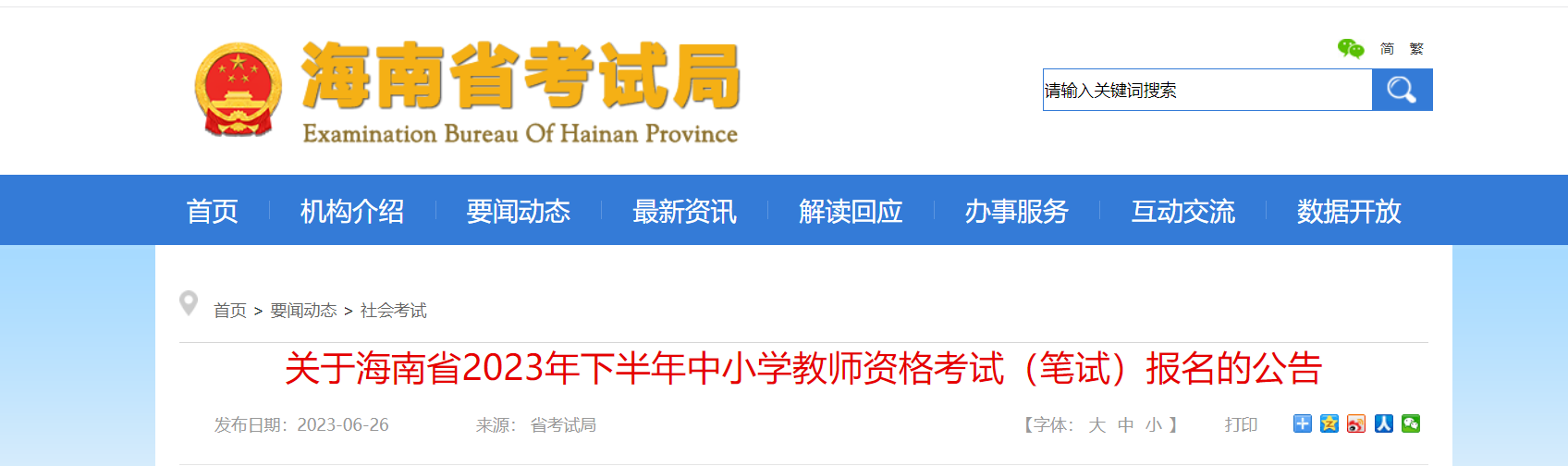 點擊進入>>>2023下半年海南中小學(xué)教師資格考試筆試報名入口