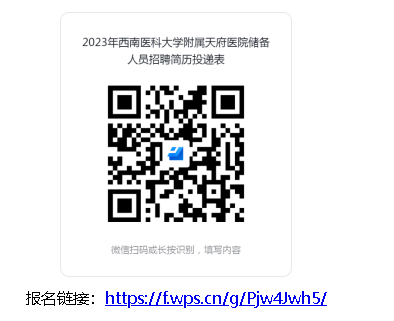 根據(jù)西南醫(yī)科大學(xué)附屬天府醫(yī)院(眉山天府新區(qū)人民醫(yī)院)發(fā)展規(guī)劃,現(xiàn)將2023年儲(chǔ)備人員招聘計(jì)劃公布如下,請(qǐng)按照以下流程進(jìn)行報(bào)名。
